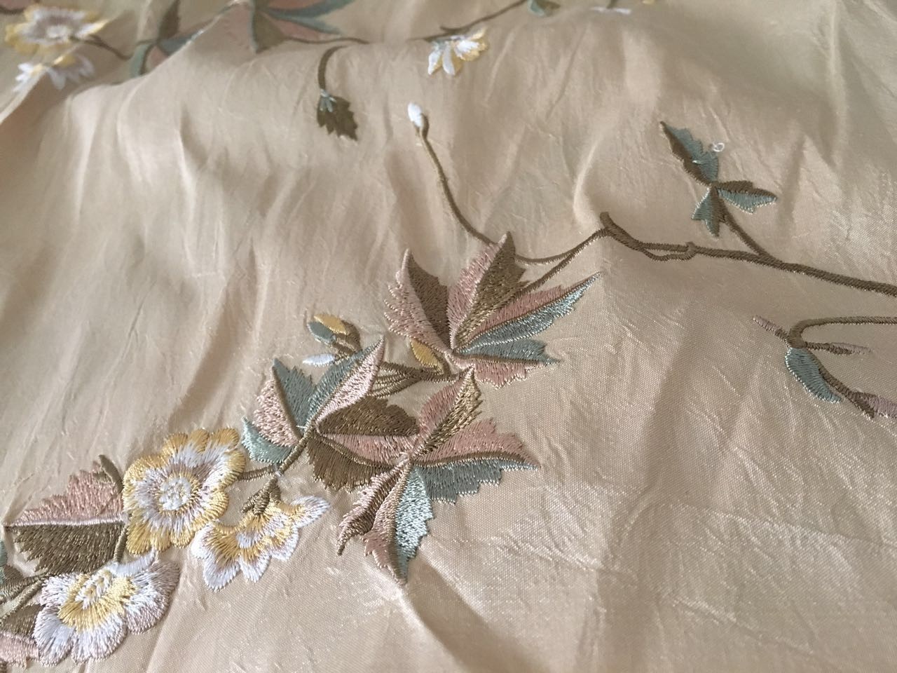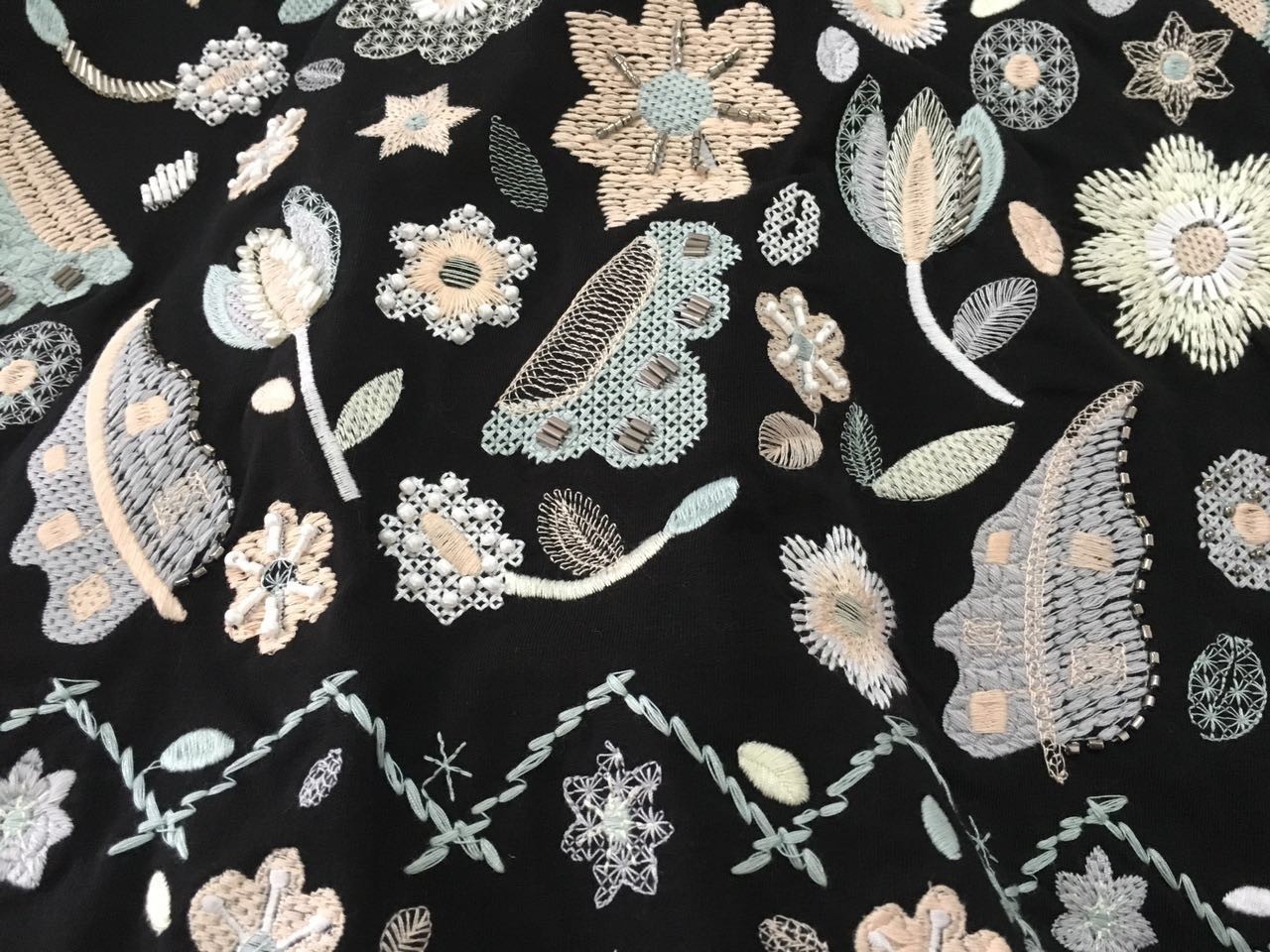 △张洁从旧货市场淘来的一块布头,精美的刺绣工艺,高雅的色彩搭配,成为了她新系列的迸发点,灵感来源。