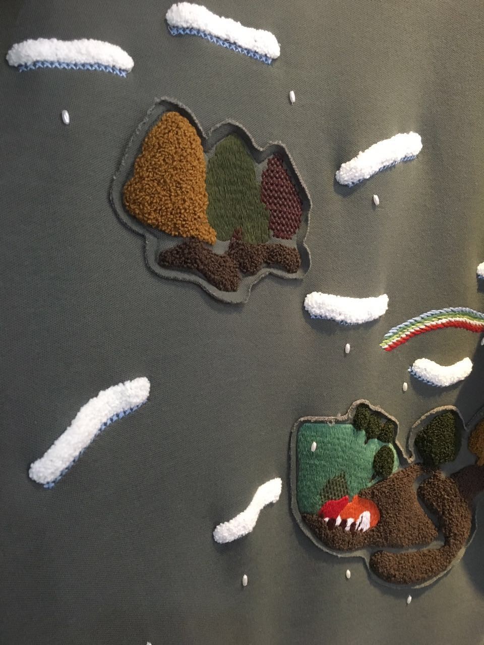 △Polo衫局部特写,由多种刺绣技法组合,不管是图案造型,还是刺绣技法,都是张洁精心设计,这便是她表达原创的方式。