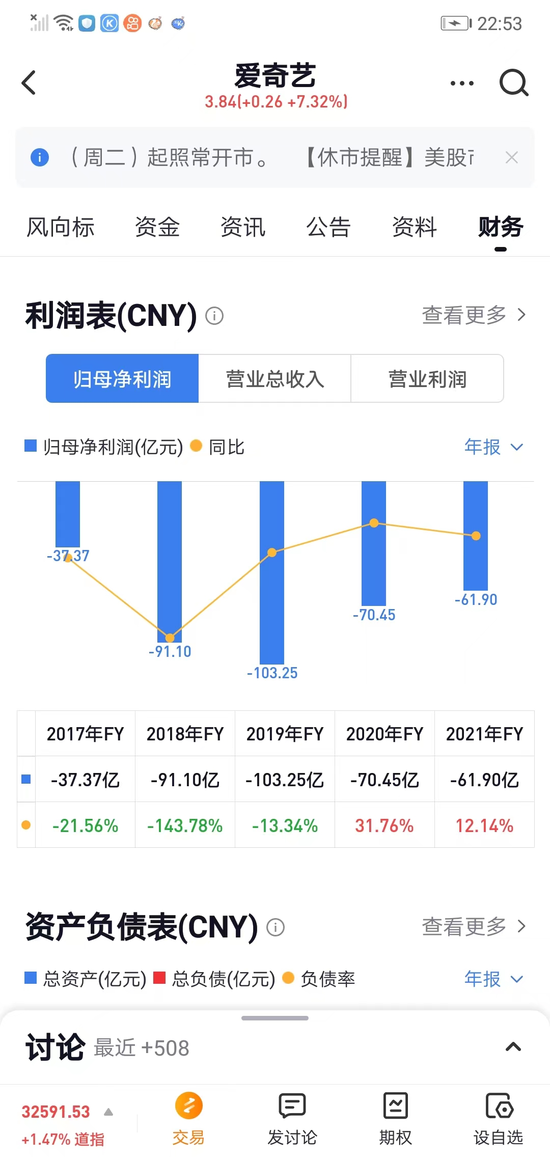 爱奇艺2017-2021年利润表 图源:雪球
