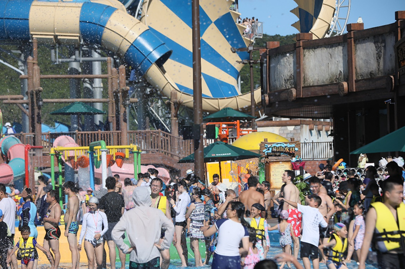 开园当日游人如织,一片热闹欢腾,多项独特的娱乐项目让游客大呼过瘾。冲刺“海湾水寨”10条滑道,挑战近200种游乐玩法;攀上超百米滑道的“玄武大滑梯”开启急速穿梭,让每一位“挑战者”都不虚此行;带孩子们探索童趣无限的“玄武小滑梯”和“小小水战”,享受纯真欢乐……水世界的王牌项目引来游客争相解锁花式嬉水玩法,热力值高居不下。