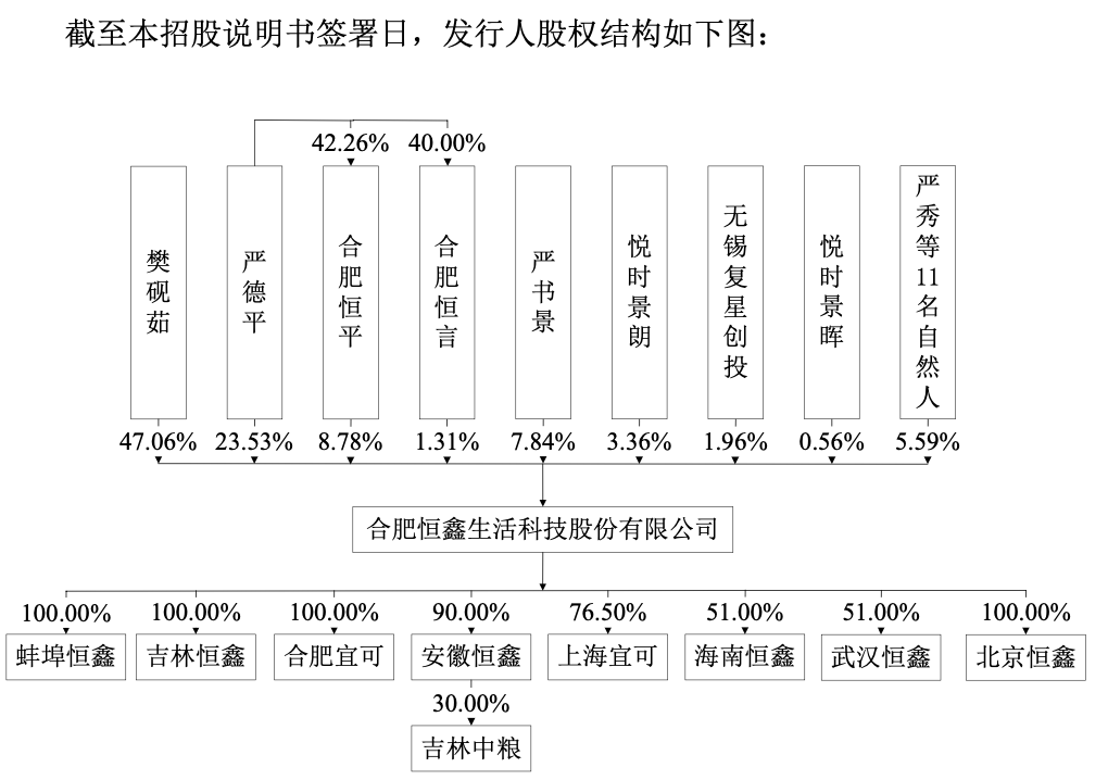 IPO前,樊砚茹、严德平夫妇及其女严书景为公司控股股东、实际控制人,三人合计控制表决权股份比例为88.52%。另外合肥恒平为员工持股平台、合肥恒言为实控人亲属持股平台,悦时景朗、悦时景晖、无锡复星创投为外部股东。