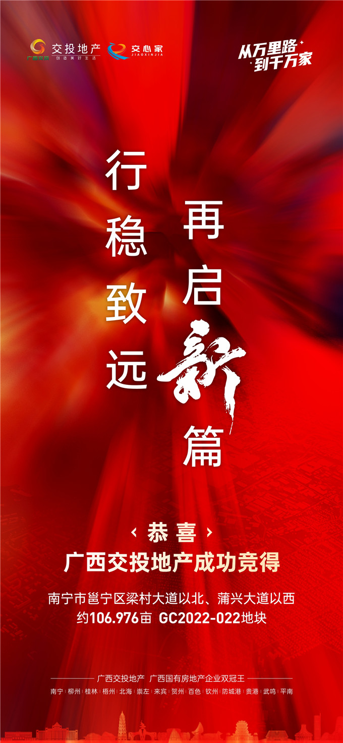5月27日,南宁园博园旁边1幅106.976亩地块成功出让,被中交地产(广西地产集团有限公司)以总价45999.6069万元底价拿下,楼面地价430万元/亩,楼面价2150元/㎡。这是交投继今年3月25日以总价5.26亿元摘得邕宁区龙岗东江湾路73亩地块后,在邕宁区蒲庙片区拿的第二幅地块。
