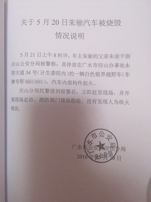 公安局也出具了一个份关于“没有发现人为纵火情况”的说明。