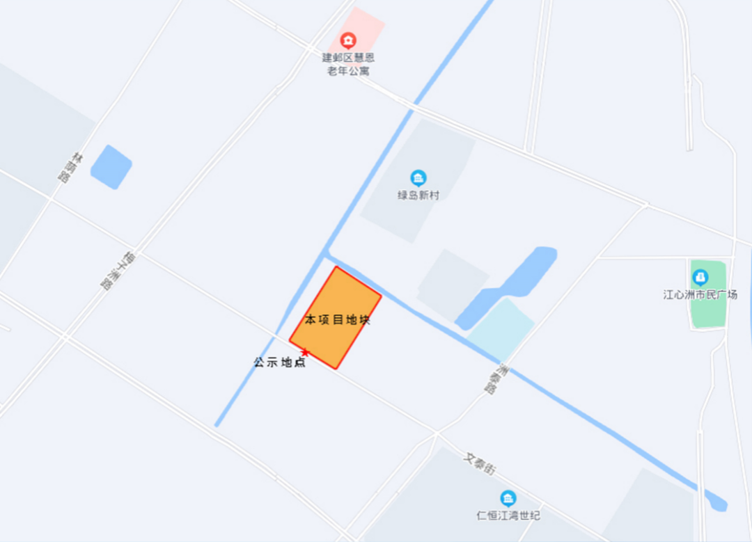 项目位于建邺区江心洲南部,西至汇德路,南至文泰街,北隔东寿水道至文萃街,东邻规划高中。
