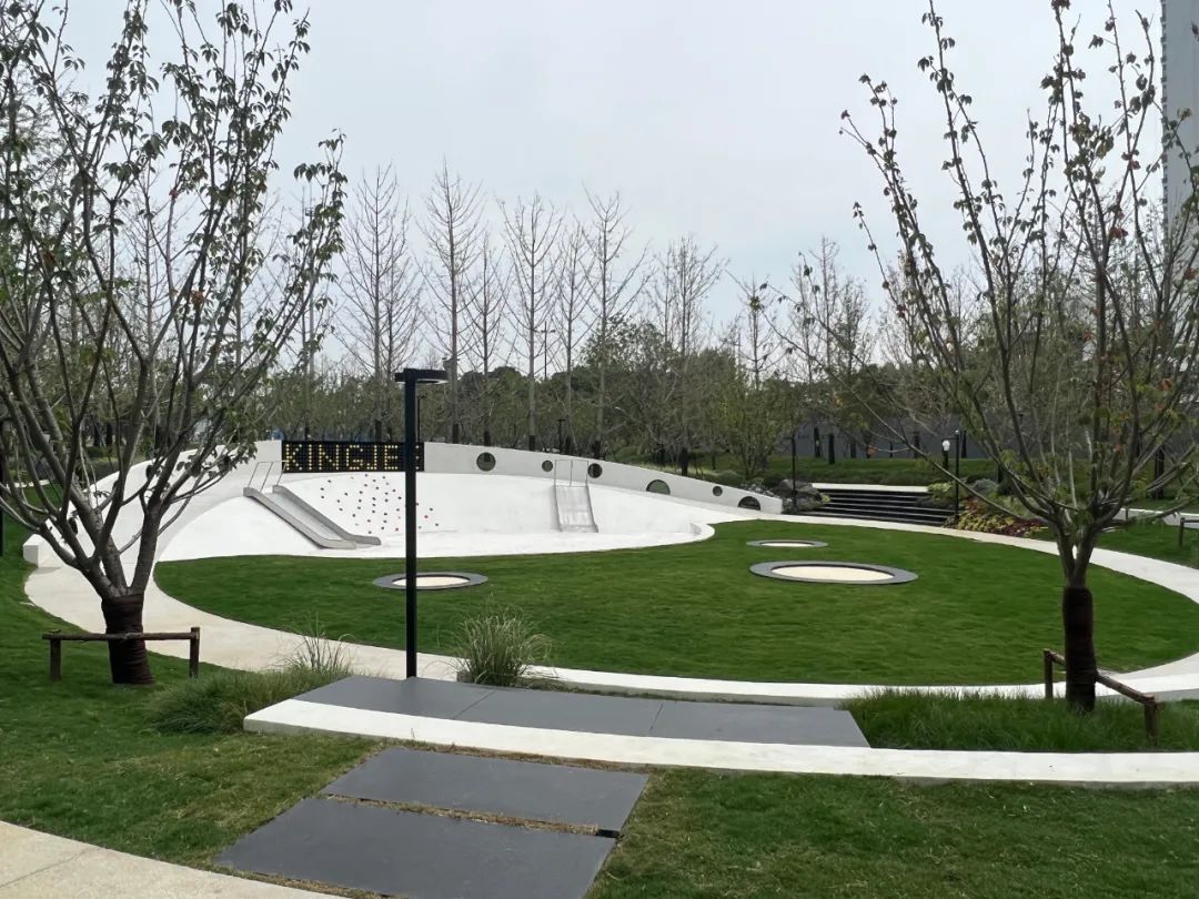 项目还未开盘,围墙外的一座超大型7600㎡双公园实景美学示范区就已经建成。