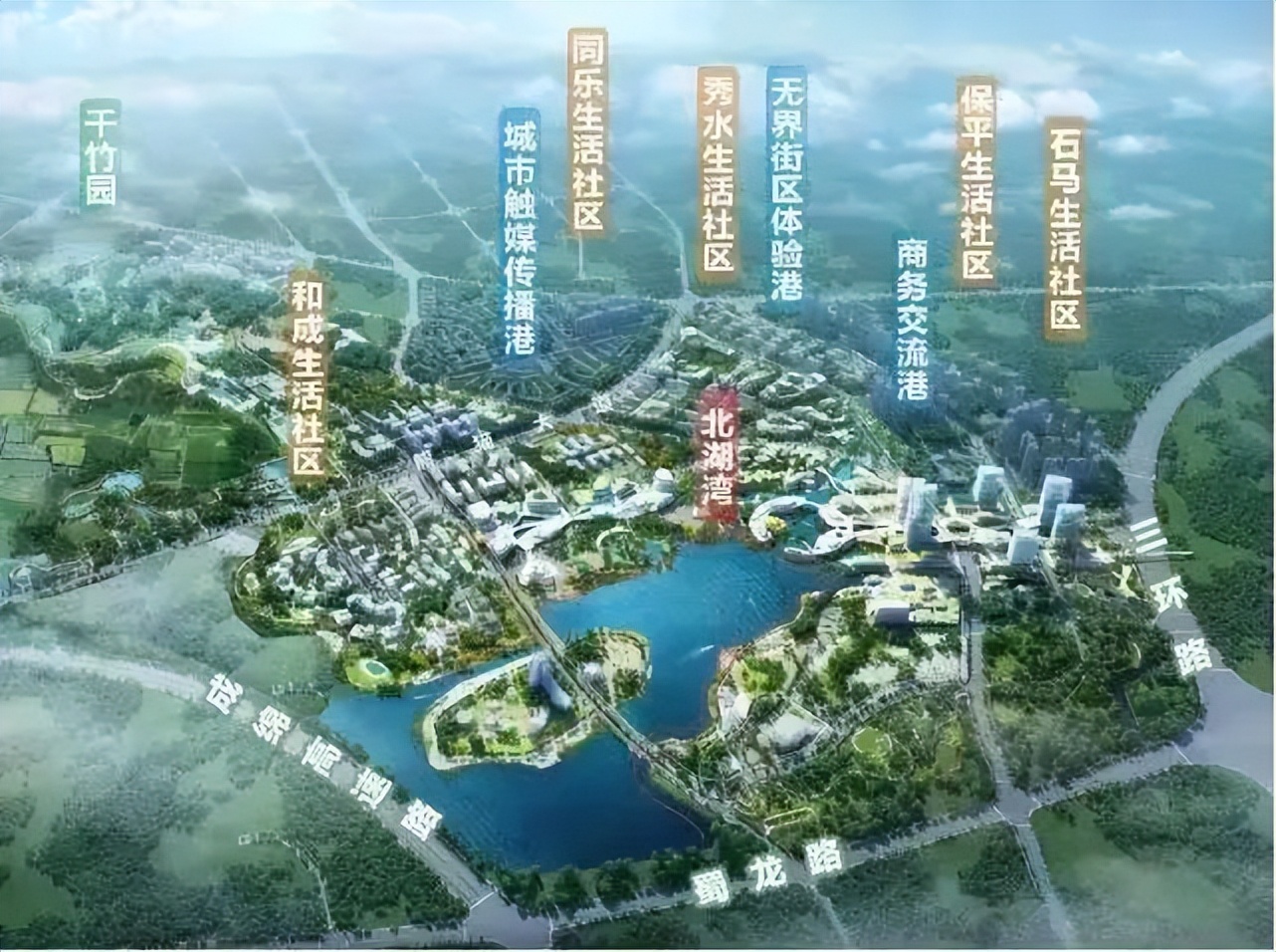 2020年3月,成都市规划和自然资源局公布《成都市环城生态区总体规划优化提升(公示版)》,其中北湖板块位列七大楔形地块行列,环城生态带上这片最大的绿楔,将成为引领“中优”区域品质提升和人口疏解、践行“公园城市”营城理念的重要支撑与宜居生活片区。