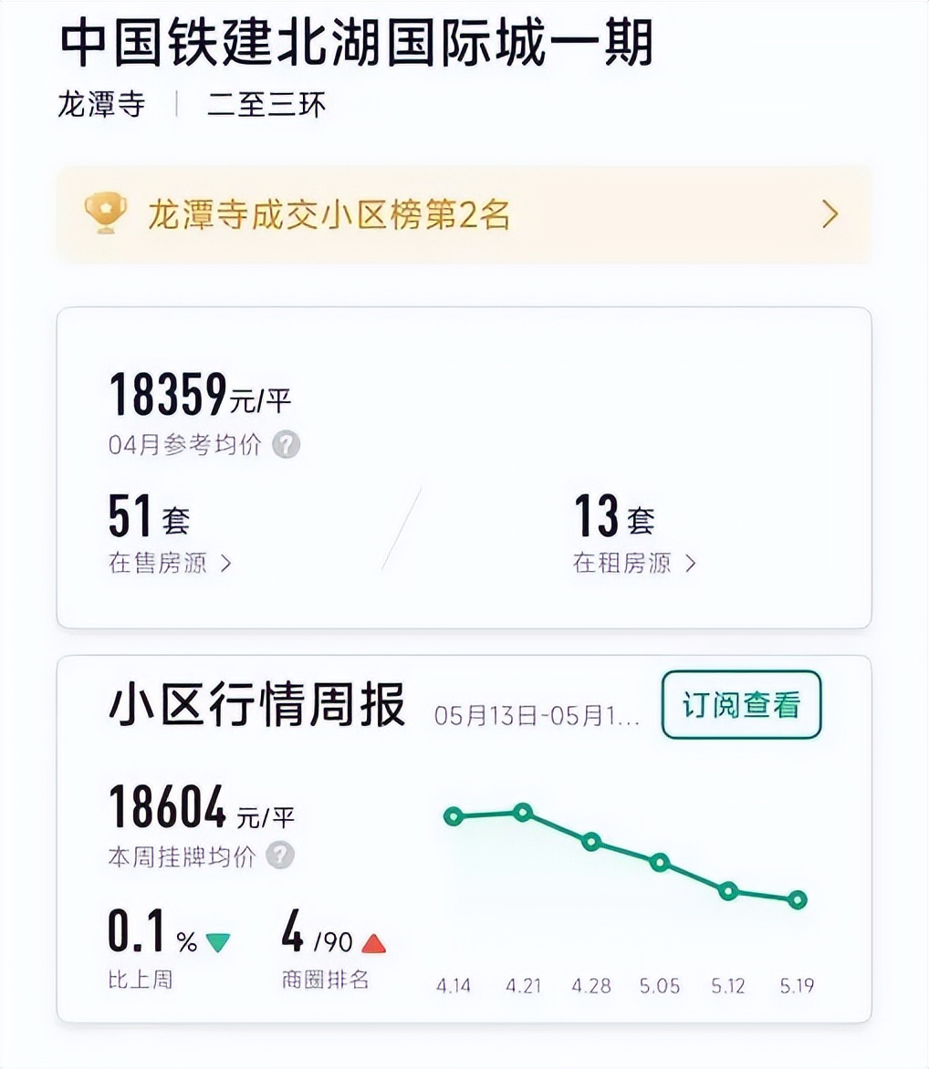 二手房方面,目前中铁建北湖国际城在链家上挂牌房源的均价在1.8万左右。首钢蓉城里、中铁建西派泊玥由于交房时间不长,目前暂无房源出售。