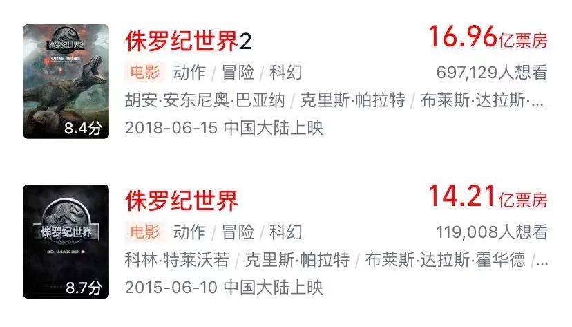 在大片上映前,不妨回顾一下侏罗纪系列IP的前世今生,期待《侏罗纪世界3》能够逆大盘突破前两部的成绩,成为2022年的进口片救市之作。