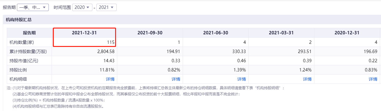 从iFind对机构持股情况的统计也可以看出,2021年三季度以前机构对凤凰光学少有问津,持有的机构家数大多不超过10家,却在2021年末增长至115家。