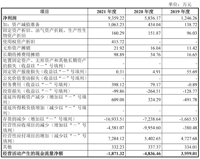 招股书显示,报告期内公司经营活动现金流量净额与净利润之间的差异主要受经营性应收项目、经营性应付项目和存货余额的增减变动的影响。