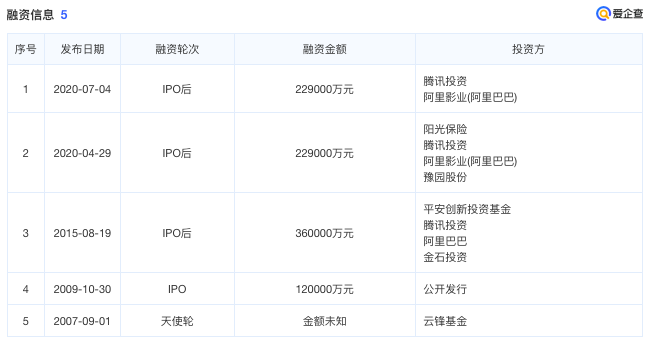 没了大批艺人的华谊兄弟元气大伤,互联网资本开始进入视线。华谊兄弟《招股书》披露,马云在2006年6月,以53.5万元的价格买下华谊兄弟10.7%的股权,后马云又多次增持,还拉来了自己的朋友一起入股。爱企查显示,2007年云峰基金(马云、虞锋为创始人)对华谊兄弟进行融资,还有万向集团的少帅鲁伟鼎、分众传媒的江南春也分别入股华谊。2011年5月,腾讯以16元/股的价格,花费4.45亿元获得4.6%股权,成了华谊兄弟第一大机构投资者。