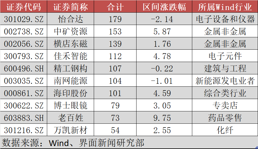 与此同时,机构调研热情也直线下滑。Wind数据显示,5月23日-5月27日,沪深两市仅有191家上市公司获得机构调研,较上周大幅减少190家;其中19家上市公司获得超过30家机构调研;而有7家上市公司获得超100家机构调研。