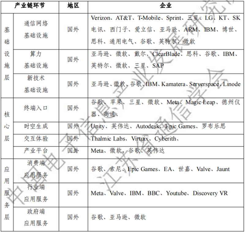 按产业链各环节划分,元宇宙重点企业可以归纳为下图所示。