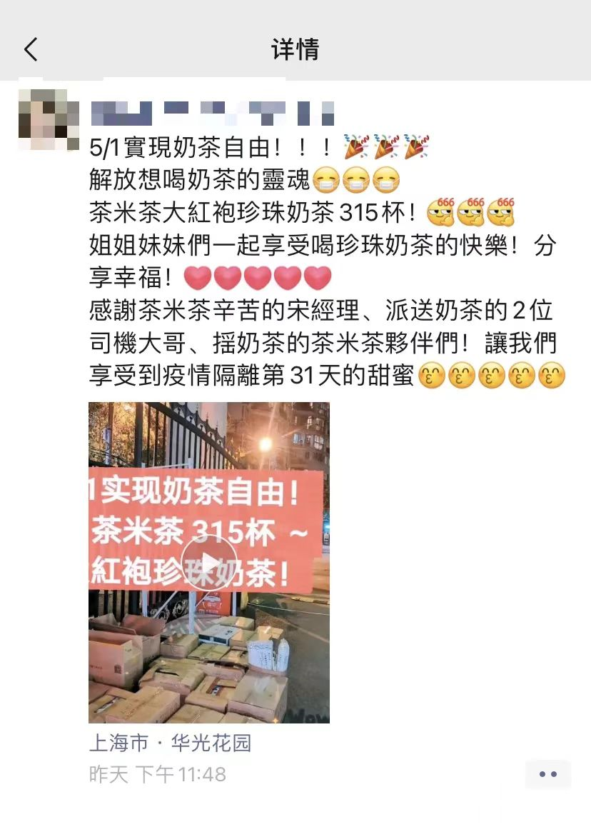 上海第一批复工的奶茶店在4月底。