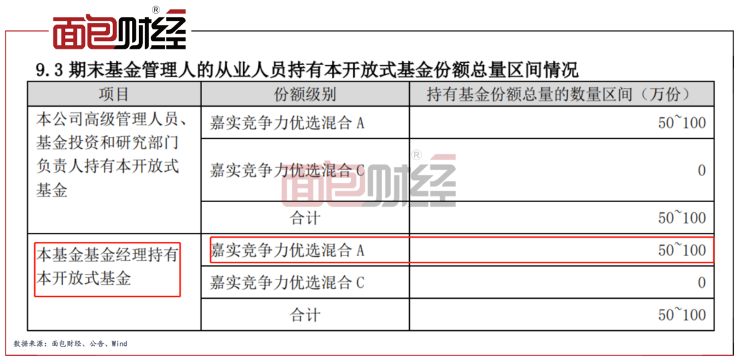 上述4只产品中,嘉实基金的从业人员认购的基金份额占比较低,其与基金份额持有人利益之间的绑定可能并不十分紧密。以嘉实竞争力优选混合为例,2021年末嘉实基金从业人员合计持有基金份额约137.55万份,仅占基金总份额的0.02%。其中,基金经理持有的份额在50万份至100万份之间。