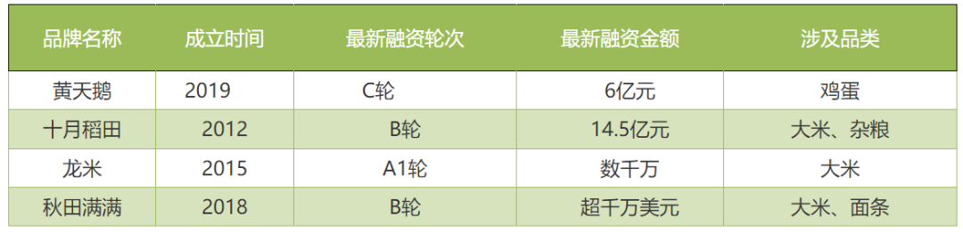 近期,基础食材领域话题度最高的融资莫过于鸡蛋品牌“黄天鹅”超6亿元的C轮融资和杂粮品牌“十月稻田”14.5亿元的B轮融资。二者一个做鸡蛋,一个做大米,乍看之下都是古老传统的赛道,却得到了资本市场的重点关注。