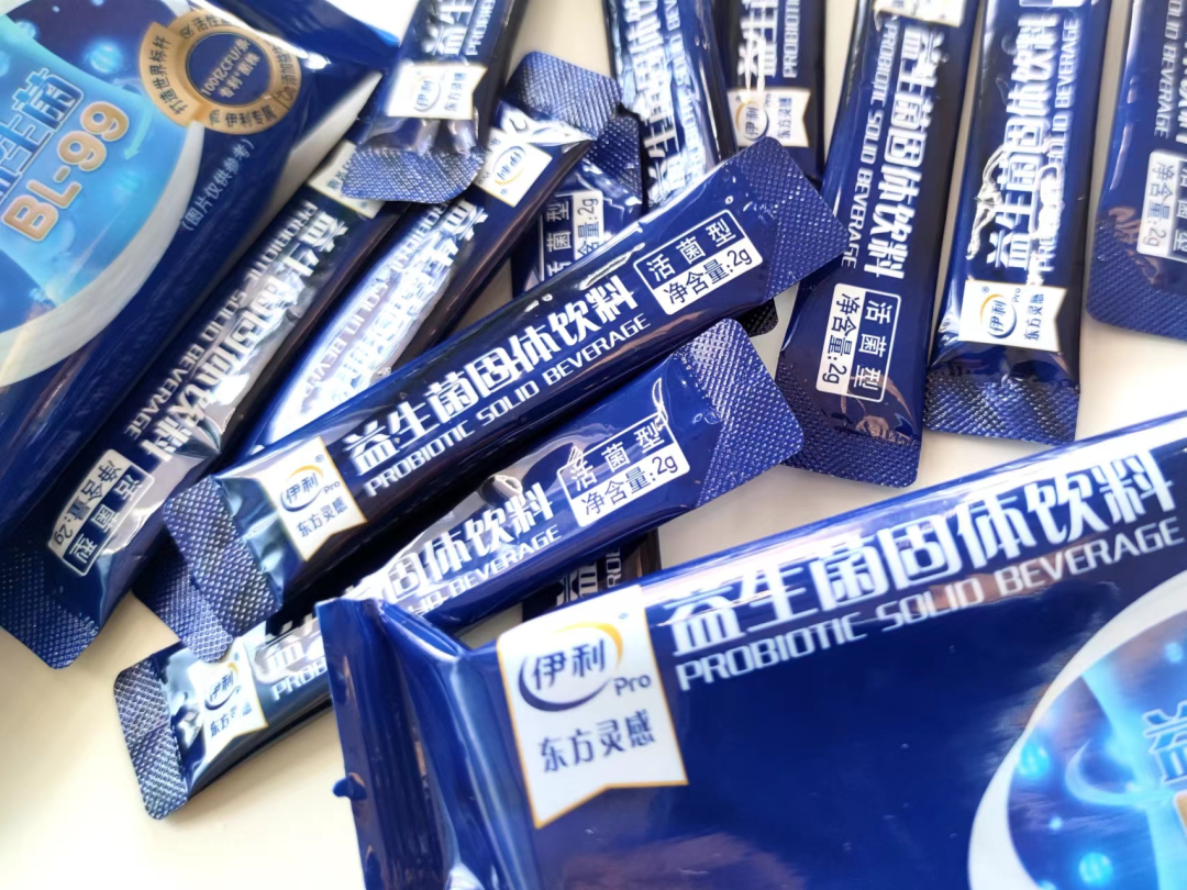 而伊利的益生菌固体饮料,可以常温运输,常温保存。对茶饮店来说,食安风险、运营成本也进一步降低。