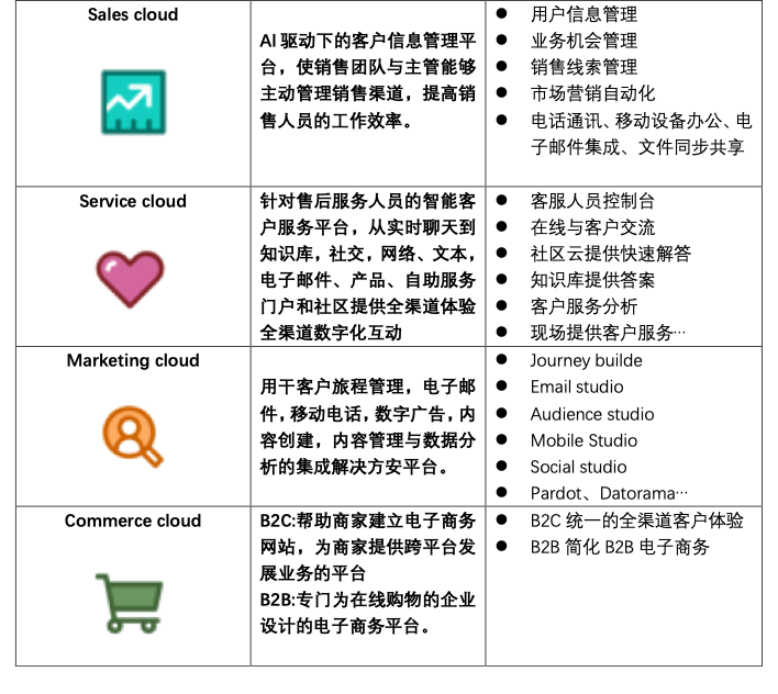 正如前言所述,在搭好PaaS架构、建立基本的SaaS生态后,Salesforce开始加速对生态内云产品进行整合。以2009年为节点,Salesforce推出service Cloud(服务云)在线客户服务应用,成为首家年收入达10亿美元的云计算公司。