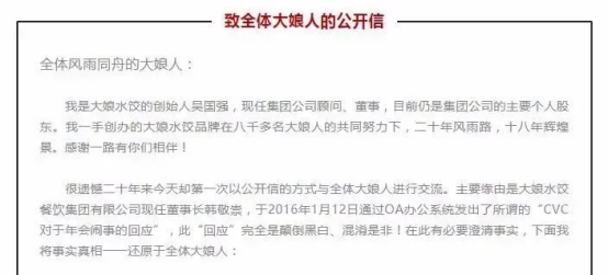 被外资驱逐出局的创始人吴国强对此痛心不已,曾公开发文炮轰投资方,对CVC进入之后的一系列改革表示不满,更对大娘水饺品种大幅减少及减量加价大为恼火。