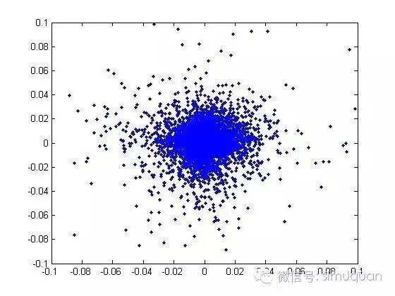 另外,A股市场上的大部分时间里,市场是无法预测的。下面这张图给出了t日A股涨跌幅和t+1日A股涨跌幅的对比情况。我们可以发现,A股的涨跌幅基本上是无序的。虽然我们不否认在某些情况下,A股明日的涨跌幅是可以预测的。