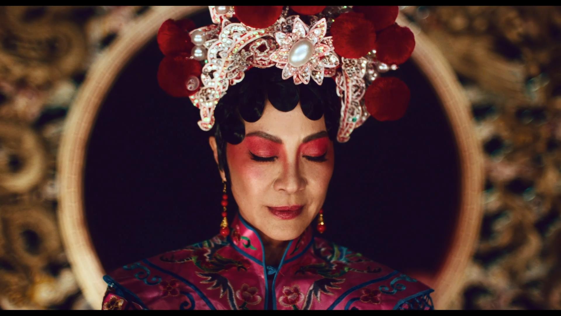 电影《瞬息全宇宙》(又名《妈的多重宇宙》)围绕55岁美国亚裔妇女“伊芙琳”(杨紫琼 饰)的家庭生活展开,又聚焦于她平常生活中脱轨的一天:这一天,她要维持洗衣店十年如一日的正常运转、为远赴重洋而来的老父亲庆生、阻止叛逆女儿乔伊(许纬伦 饰)的出柜、应对与丈夫威蒙(关继威 饰)的情感危机,以及得去税务局向刁钻的女公务员解释混乱的税务问题。导演关家永和丹尼尔·施纳特还给这个中年妇女惨淡经营的生活故事裹上了一层“超级英雄叙事”的浮华外衣:伊芙琳习得了在多重宇宙的自我间来回穿梭的能力,她需要在一系列的战斗和探索中阻止世界的毁灭、拯救自己的女儿。