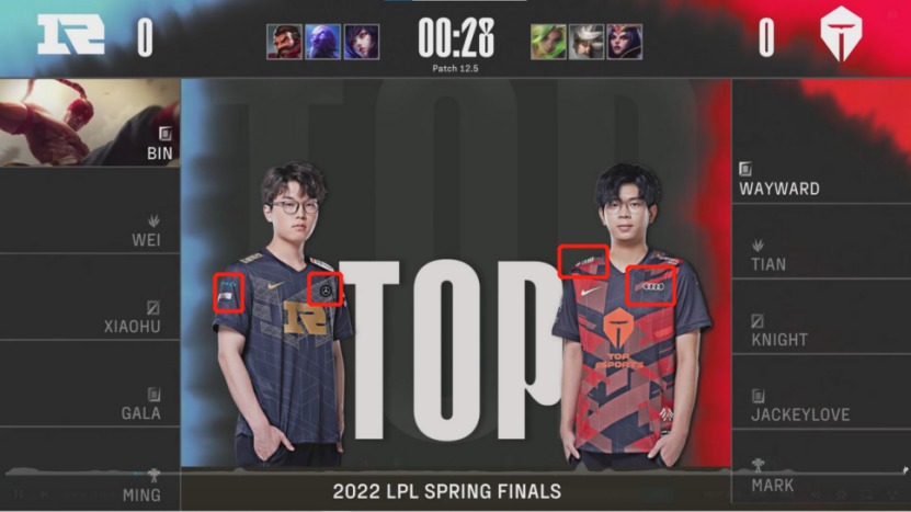而反观2018年赛冠军IG,近几个赛季一直战绩不佳,2022年年初the shy、rookie等明星选手纷纷出走后,战队背后赞助也迎来了最低谷。在2022年LPL春季赛的定妆照中,可以发现如今IG队服上仅剩虎牙直播与蔡司两家赞助。
