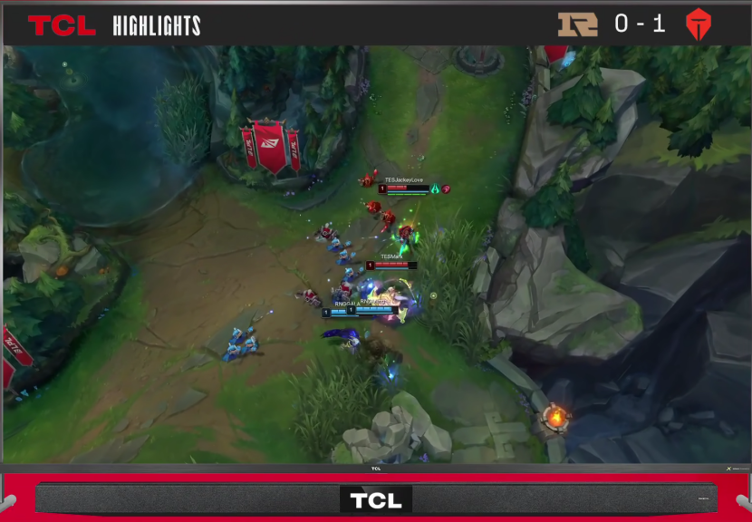 但频繁的广告势必会影响线上观赛体验,为此赛事方必须尽可能地“软植入”。例如在有队伍击杀大龙时,结合游戏内容滚动相应广告语;回放精彩镜头时将TCL电视作为背景板等。