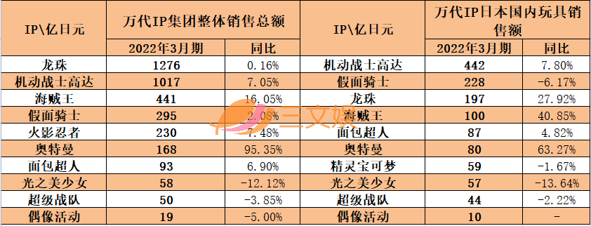 上一财政年度,万代仅《龙珠》IP的产品销售额就有1276亿日元(约合人民币66.6亿),《机动战士高达》的产品销售额1017亿日元(约合人民币53.1亿),单IP创收就能远远超过国内绝大多数玩具厂商整个公司的业绩。