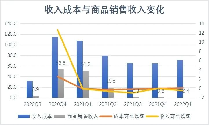 从上图中可以看到,商品销售收入与收入成本基本保持相同增速,商品销售收入的增高也使得收入成本不断攀升。