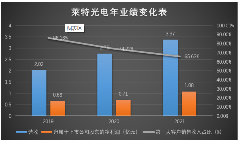 数据显示,莱特光电2021年总营收3.37亿元,归属于上市公司股东的净利润为1.08亿元,公司要想达到中信证券上述研报预测的2022年2.15亿元净利润水平,并不是件容易事。