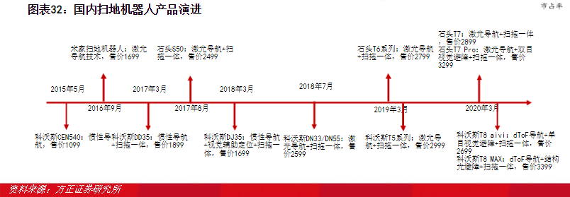 扫地机器人经过三次导航技术的迭代,现阶段激光导航技术发展较为成熟,激光模组也已实现国产化,后续提升空间不大。对于引领技术升级的科沃斯、云鲸、石头等,避障能力是目前是扫地机器人智能化的核心体现,是后续提升产品力的重要一环,也是当前主流大厂在追逐的硬核部分。