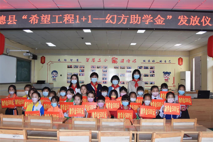据了解,幻方助学金是宁波幻方投资管理有限公司向中国青少年发展基金会捐款1.5亿元,用于中国青基会实施“希望工程1+1——幻方助学计划”的公益项目。此项计划资助承德县175名一年级女生,为每位贫困女生提供学习生活补助1000元,分上下两个学年发放,以此帮助她们更好地完成学业、健康快乐成长。