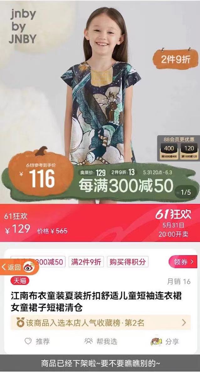 此前有网友发帖称,江南布衣集团旗下童装品牌jnby by JNBY在网店所售的一条儿童短袖连衣裙画风“诡异”。裙子上印花疑似印有一个跌倒的小孩,后面有两个坐着的小孩。并且,图案上方印有英文称“我很害怕!我希望他们停下。”等等语焉不详的配文。