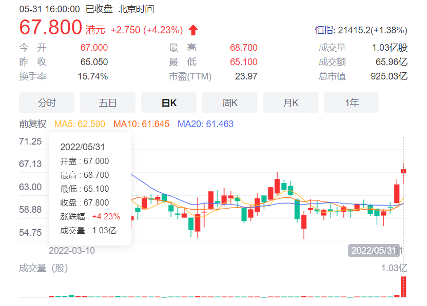 交易完成后,复星即清仓手中青岛啤酒股份。截至2022年5月31日港股收盘,青岛啤酒H股价格为 67.80 港元/股,与 2017 年底郭广昌投资青岛啤酒时每股27.22港元的股价相比,公司股价已实现翻倍。