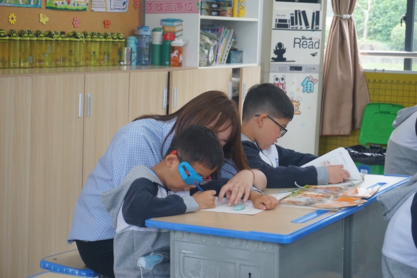 因为取得了良好的教学成绩,和较高的社会评价,有很多教师选择加入天马融合教育,影子老师宋玲在天马工作已经一年时间了,她也和天马融合的发起人郭敏燕一样,原先并不是特殊教学的老师,只是一名四处寻求孩子教学方案的家长,在陪伴孩子的几年里,她到过很多地方,跟着孩子参与过干预和教学,也自学了很多方法、参加了很多相关的培训,硬生生把自己炼成了这方面的“专家”,后来她认识了郭老师,在郭老师的感召下,成为了天马全融合教学的一名影子老师,她无比庆幸自己做出的选择。