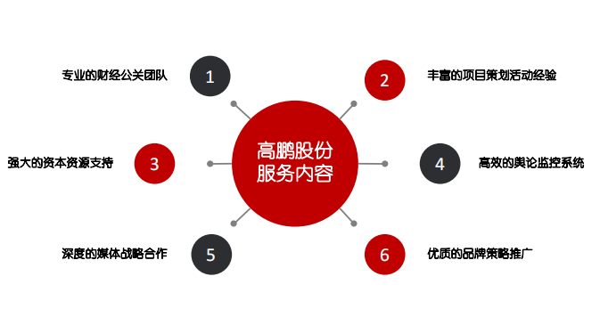 深圳高鹏企业服务股份有限公司(简称:高鹏股份)成立于2014年,中国顶尖财经及金融领域公共关系管理顾问机构之一,经过多年稳步发展,不断吸引资本、媒体的业界精英加入,已形成近百人的专业资深团队。
