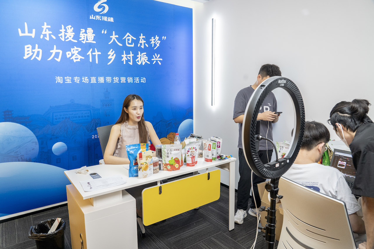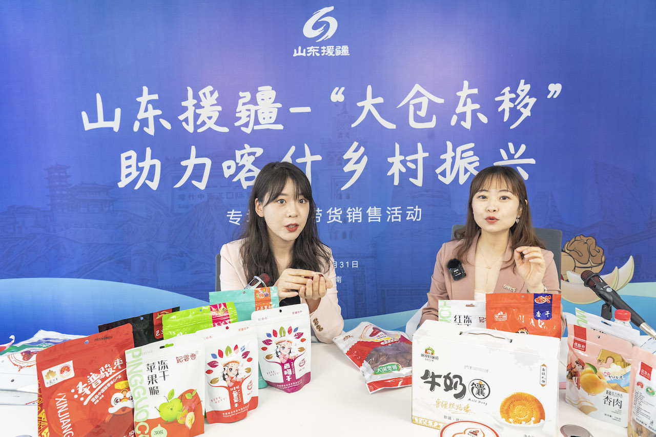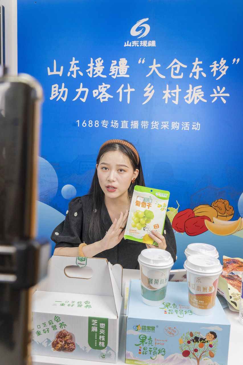 为充分扩大活动影响力,签约仪式结束后,并在抖音、淘宝、1688三大电商直播平台同时举办三场喀什特色农副产品直播销售活动,邀请山东广播电台主持人做客直播间,对“大仓东移”援疆项目工作及喀什地区特色农副产品进行介绍,积极促进直播销售。直播活动开始一小时内,累计在线观看人数已超过2万人次,最高同时在线4000余人,积极促进超过30款喀什特色农副产品参加直播销售,累计实现线上销售额8.6万余元。计划三场直播带货活动持续总时长将超过12个小时,预计通过活动举办,可累计实现总销售额近百万元,同时有力带动喀什特色农副产品线下市场销售。