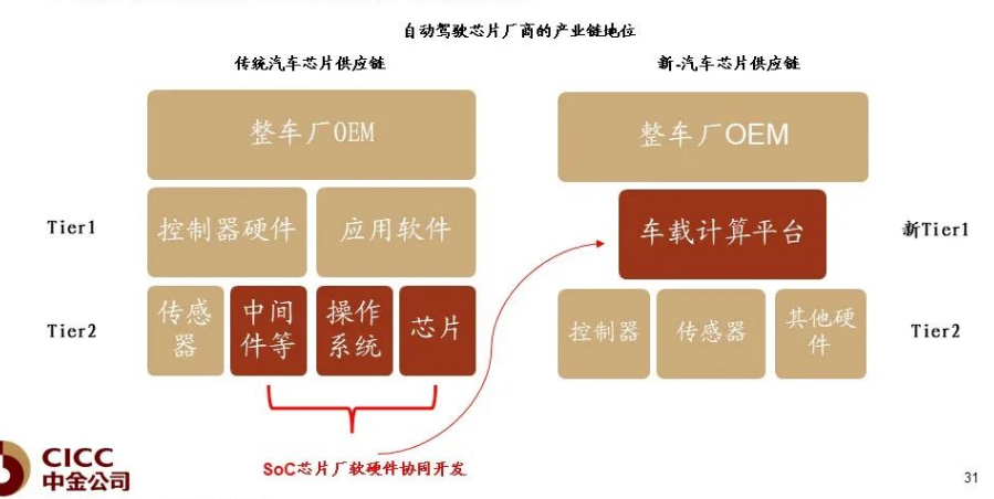 不少主机厂开始选择绕过Tier 1,直接去找芯片设计厂商,或者直接下场参与到芯片设计的研发流程。现在零部件供应商、自动驾驶算法供应商、芯片供应商、车企大家开始坐到了一个牌桌上。