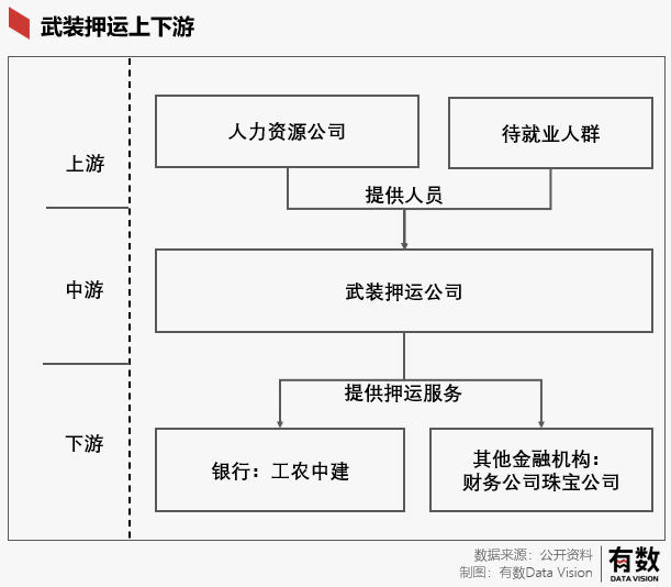 从供需关系来看的话,该公司上游对接人力资源公司,也就是寻找“安保人员”,各类正式员工加起来约一万六千人,下游主要是银行,或者说是银行网点。