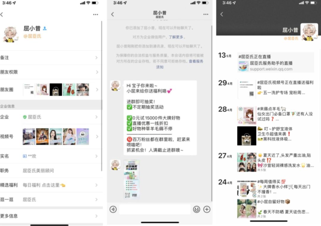 到这里,你以为这场购物就结束了吗?当然不会,当你扫码添加完屈臣氏导购小姐的企业微信后,就得在之后的日子里,接受无数条优惠信息、促销广告,加入某些奇奇怪怪的社群,有时甚至会接到声音堪比CV的推销电话。
