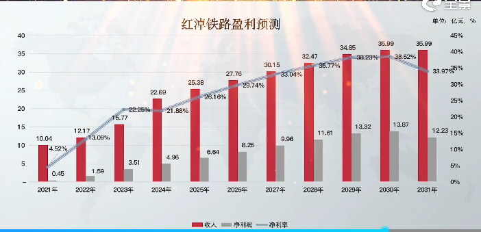 正式投产后的第二年,红淖铁路即实现扭亏为盈。2019年和2020年红淖铁路分别亏损869.37万元和亏损近3000万元,到2021年营业收入突破10亿元,并实现盈利4536.91万元。