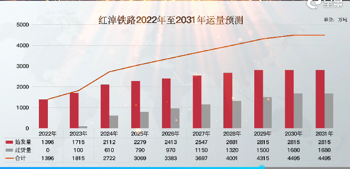 这还只是红淖铁路初期运能之下的表现。该铁路线设计运能初期3950万吨,近期运能6000万吨,远期运能高达1.5亿吨。