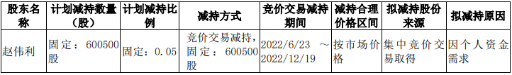 第二大股东新疆萃锦投资控股股东及一致行动人赵伟利计划清仓个人所持有的60.05万股股份。