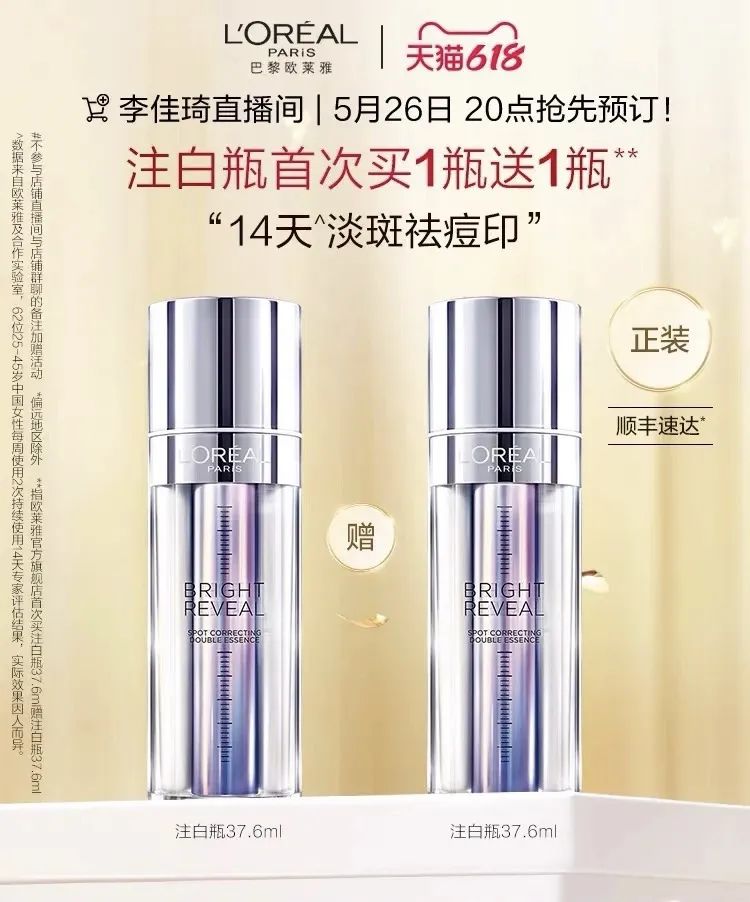其中,外资品牌的折扣力度相对过往购物节更大,雅诗兰黛、欧莱雅、兰蔻等品牌的经典大单品均增加了折扣,欧莱雅的新品注白瓶则是降低了折扣,并且一改买正装送中小样传统套路,直接买正装送正装,为与李佳琦“复合”送上满满诚意。