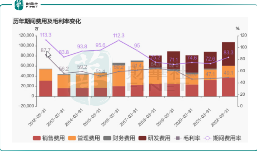 2021年用友网络的销售费用同比增长 31.7%,高于收入增速4.7%;另外,由于股权激励的影响导致管理费用提升10.5%,以及为了增强云服务产品的平台能力和核心应用能力,研发费用同比增长40.8%至4.68亿元,研发费用率达36.6%。