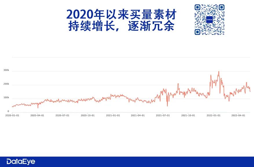 由于2021年以来,休闲、网赚、MMO三大买量大户参投游戏量、素材量激增。版号重启后更是广告爆发。整个买量广告市场素材量已非常冗余。