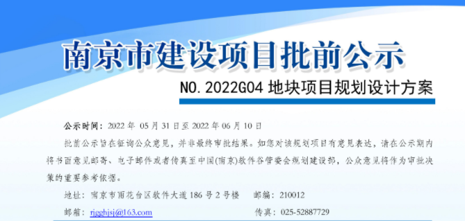 昨天,中国(南京)软件谷官网发布了该幅地块的批前公示,这也是今年首次出让地块中第一幅出规划的地块。