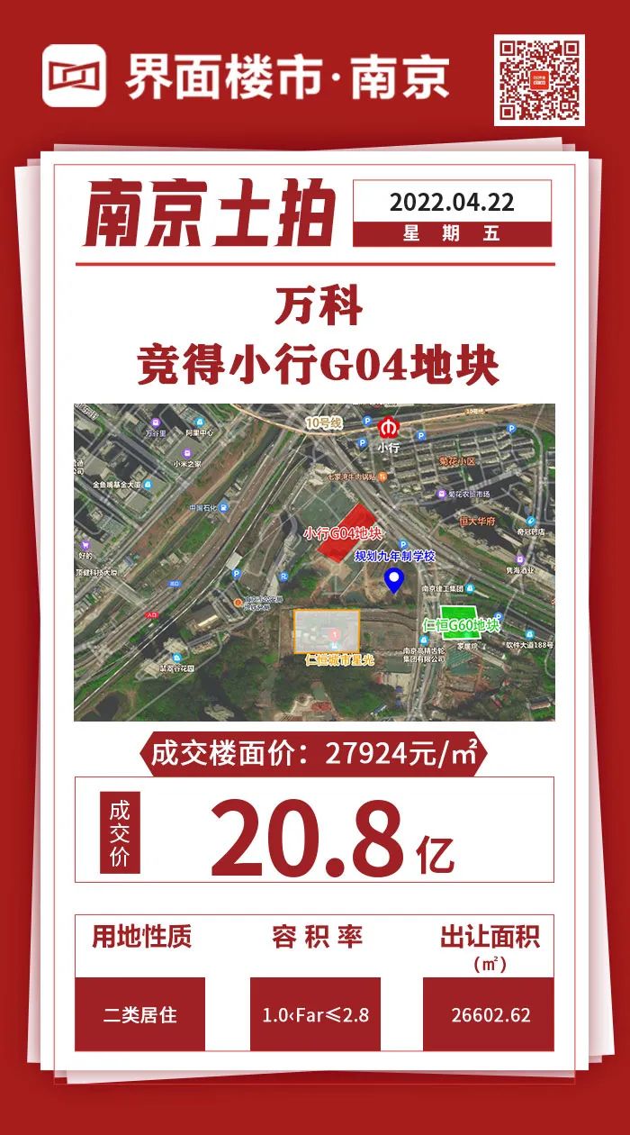 4月22日,该地块经过17轮竞价触顶,最终被万科竞得,毛坯限价39000元/㎡,拿地总价约20.8亿元,楼面地价27924元/㎡!