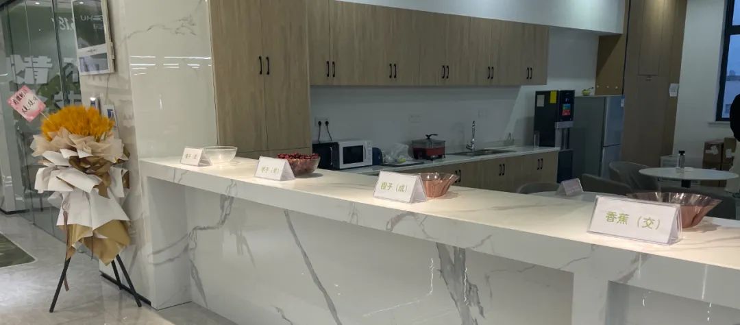 有棵树总部前台,大麦和“提枣橙蕉”,共同营造出电商大促的仪式感