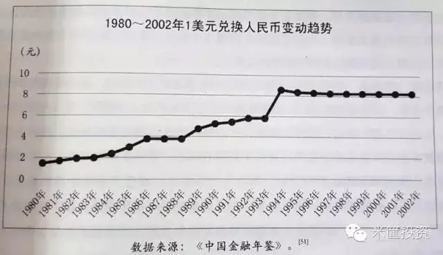 这个时期,人民币对美元一路贬值,从1980年的1美元兑1.5人民币,一直贬值到1994年的1美元兑8.62人民币,大大提高了中国出口的竞争优势,促进了中国出口的辉煌。